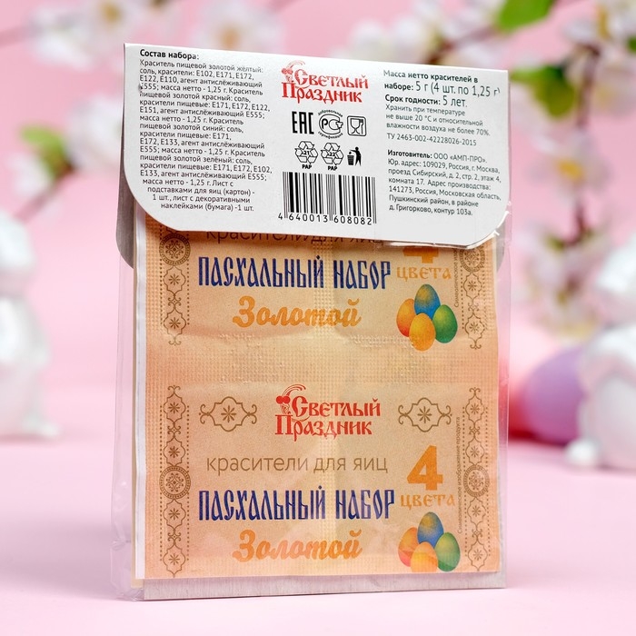 Красители пищевые для яиц «Пасхальный набор Блеск золота»