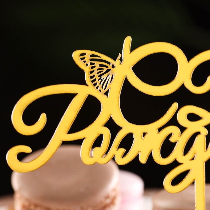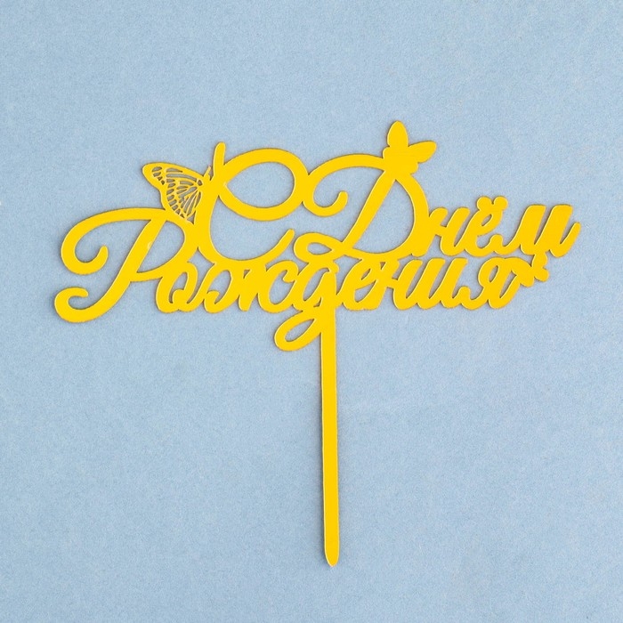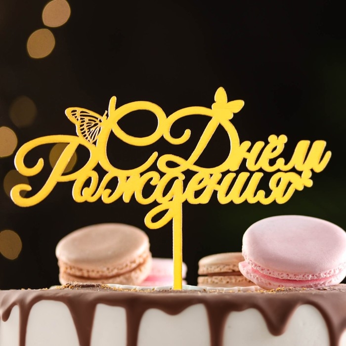 Топпер "С днем рождения" с бабочками, золотой, Дарим Красиво