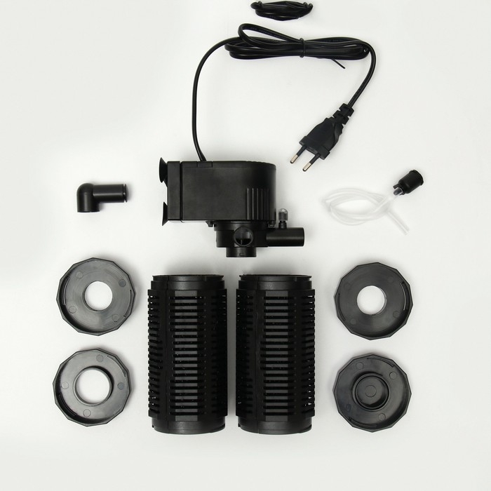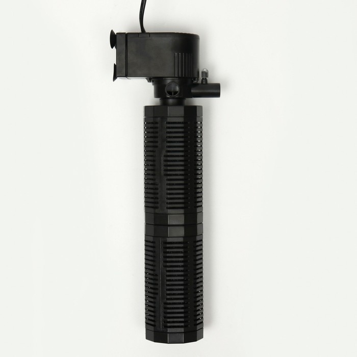 Оснащен двумя секциями для очистки воды: губки улавливают крупные частицы и загрязнения, эффективно очищая воду в аквариуме.