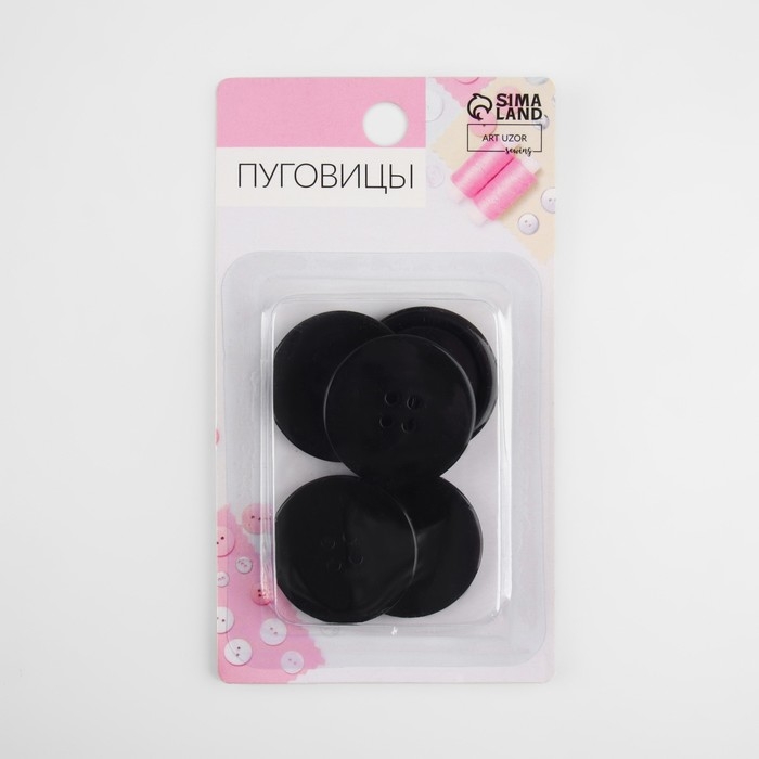 Набор пуговиц, 4 прокола, d = 30 мм, 5 шт, цвет чёрный