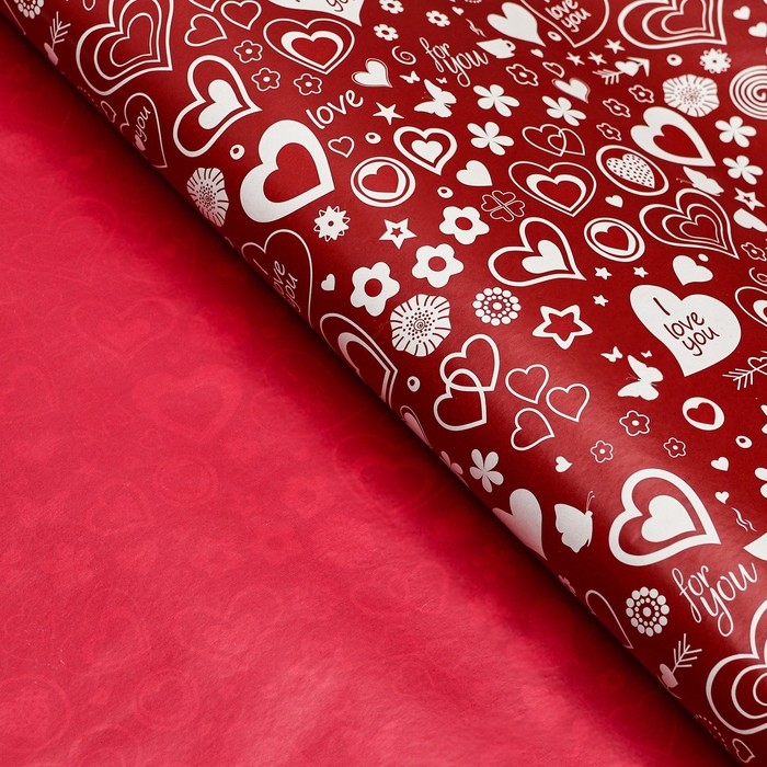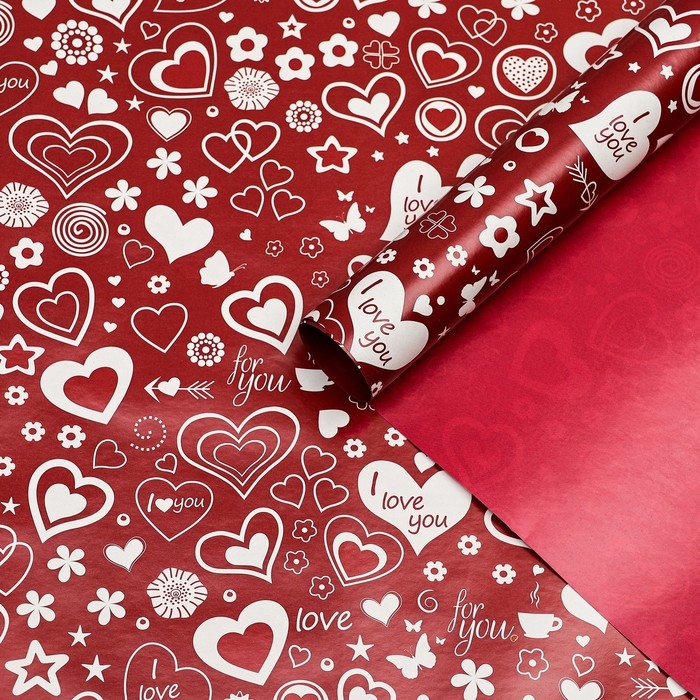 Бумага упаковочная глянцевая "Сердце",двусторонняя, 70 х 100 см