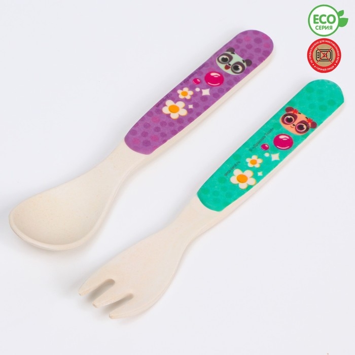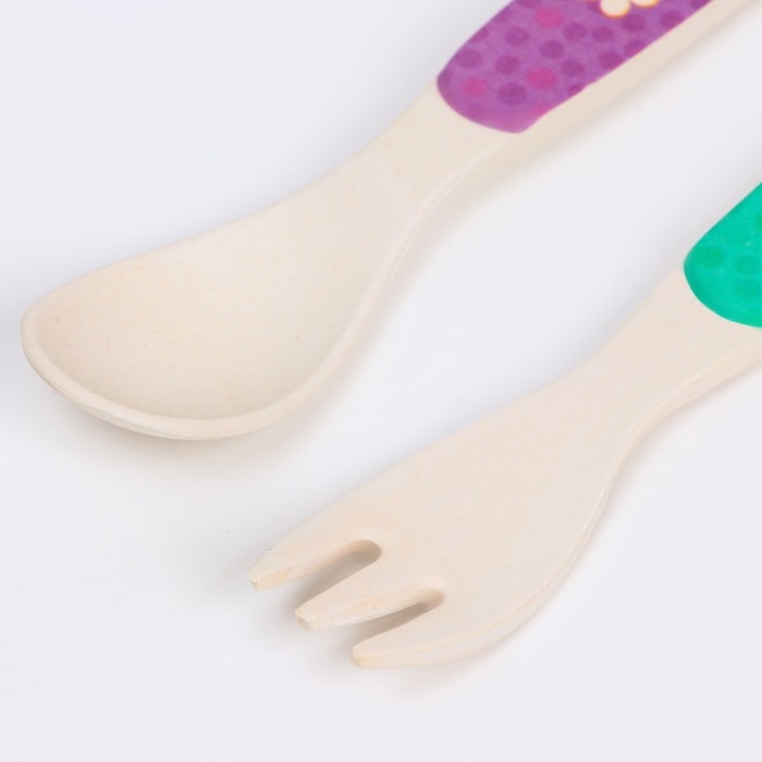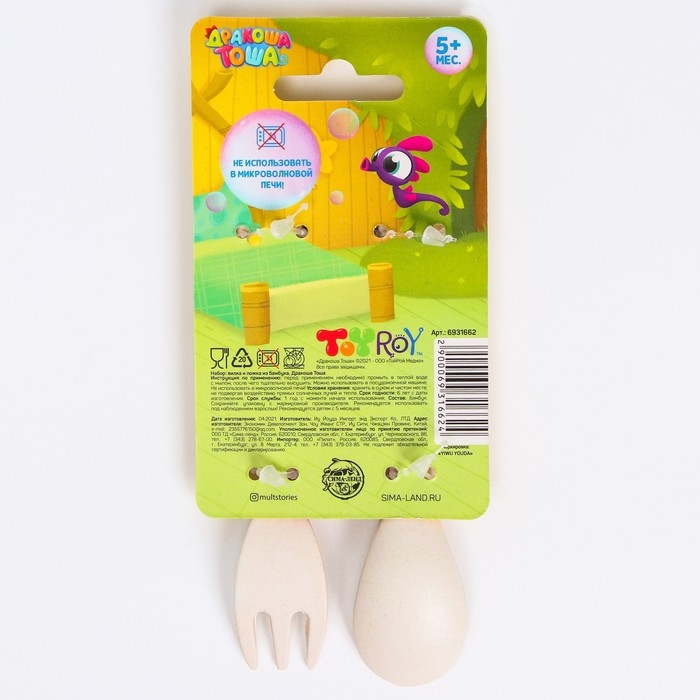 Набор детских столовых приборов из бамбука: вилка и ложка Дракоша Тоша