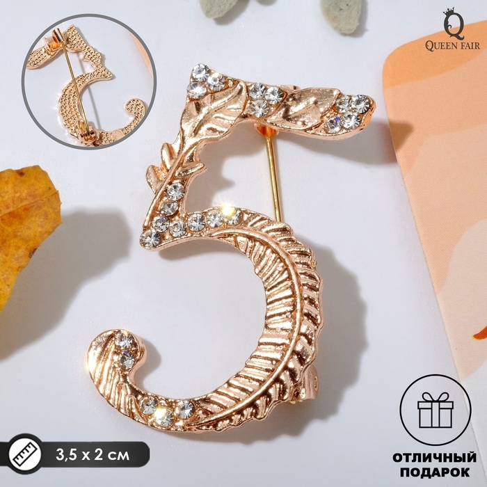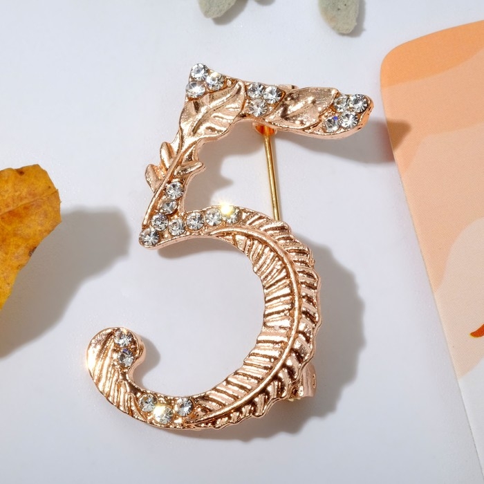 Брошь «Школа» пятёрка, цвет белый в розовом золоте