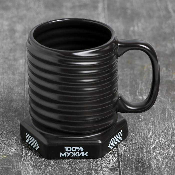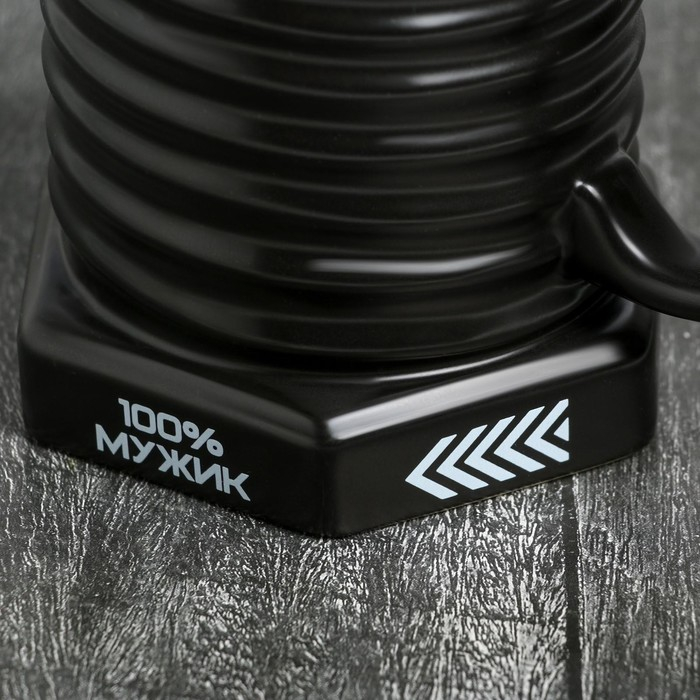 Кружка-болт керамическая «100% мужик», 400 мл, цвет чёрный