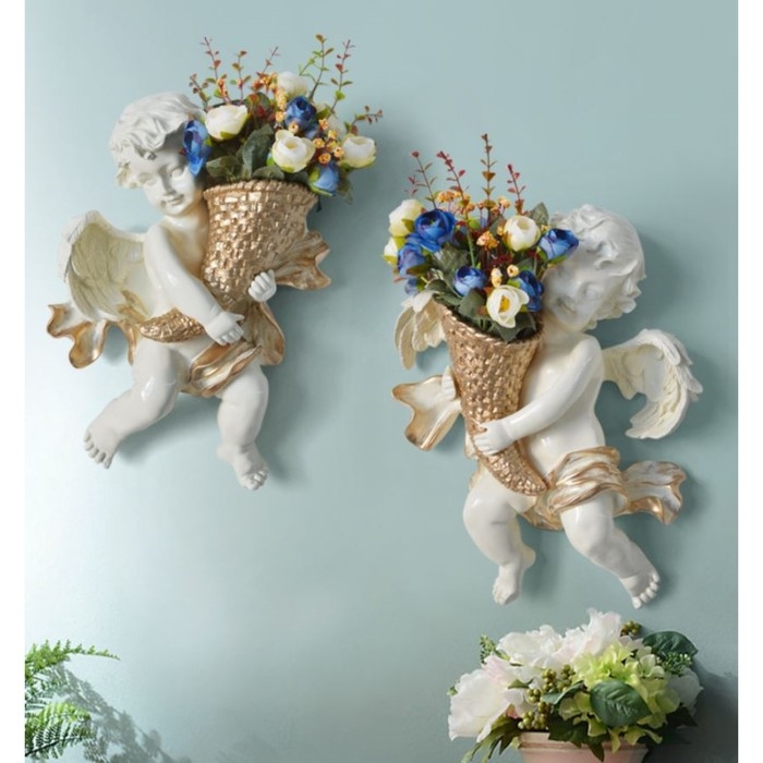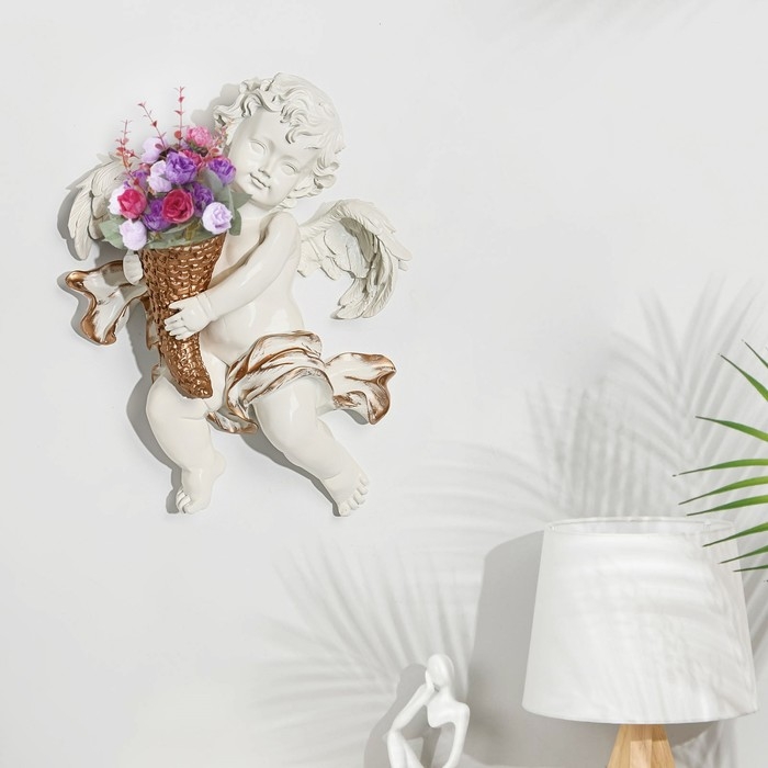 Декор настенный-ваза "Ангел с рожком", 39 x 30 см, левый