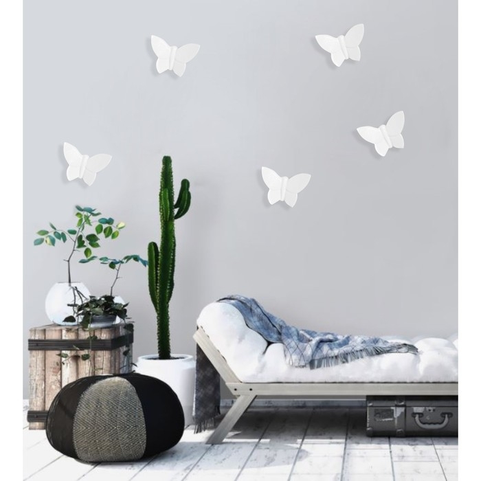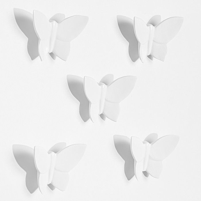 Декор настенный "Бабочки" 7,5 x 10,5 см, белый , (набор 5 шт)