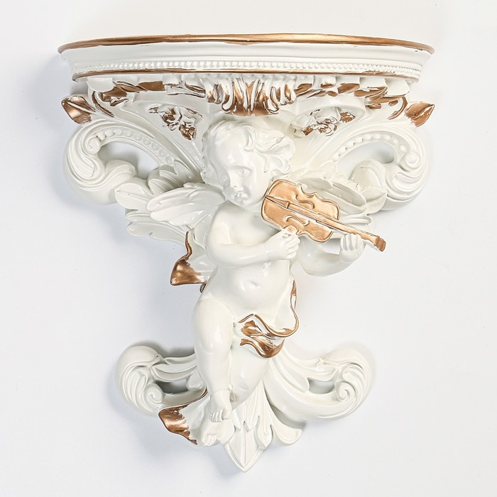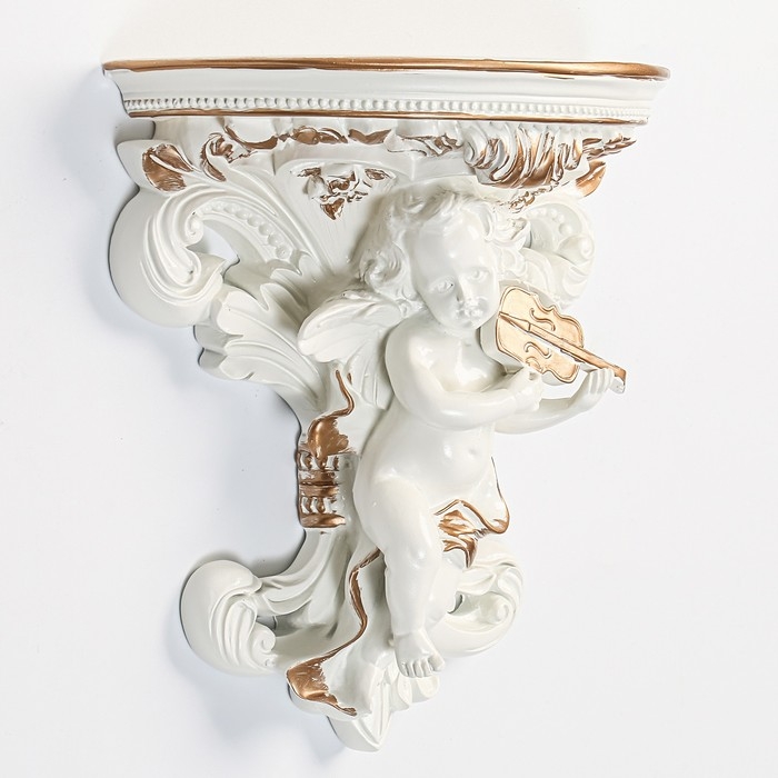 Декор настенный-полка "Ангел", 24 x 21 см, белая с золотом