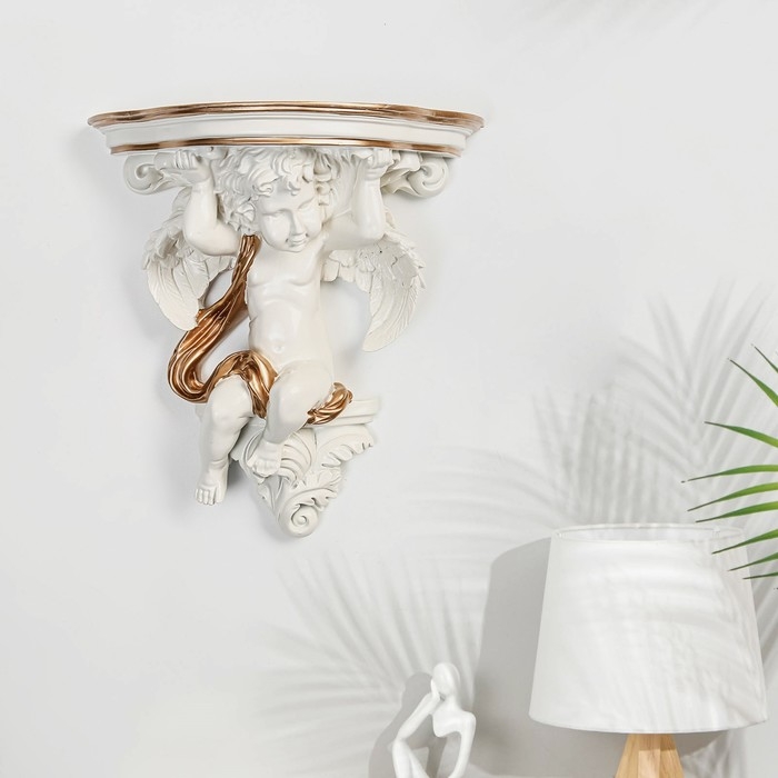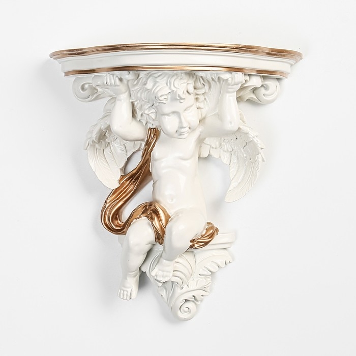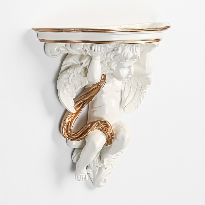 Декор настенный-полка "Ангел, 23.2 x 22 см, белая с золотом