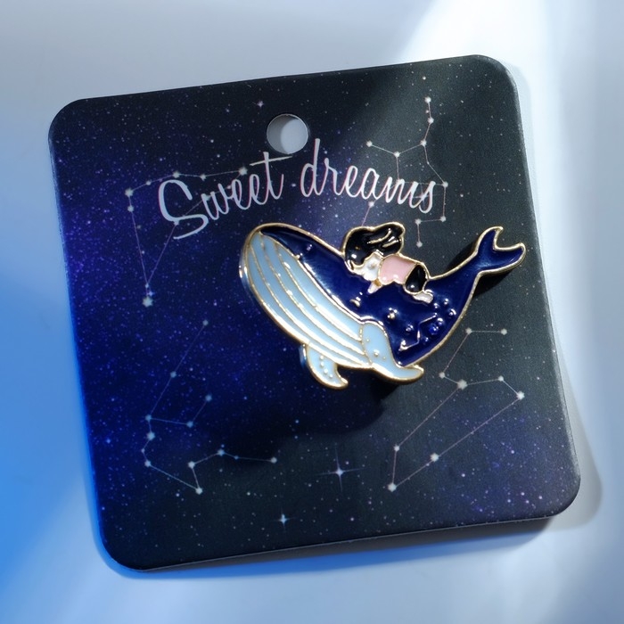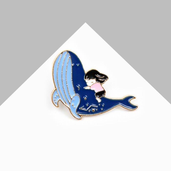 Значок «Кит» и малышка, цветной в золоте