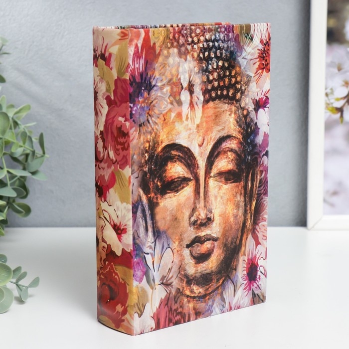 Сейф-книга дерево кожзам "Голова будды в цветах" 21х13х5 см