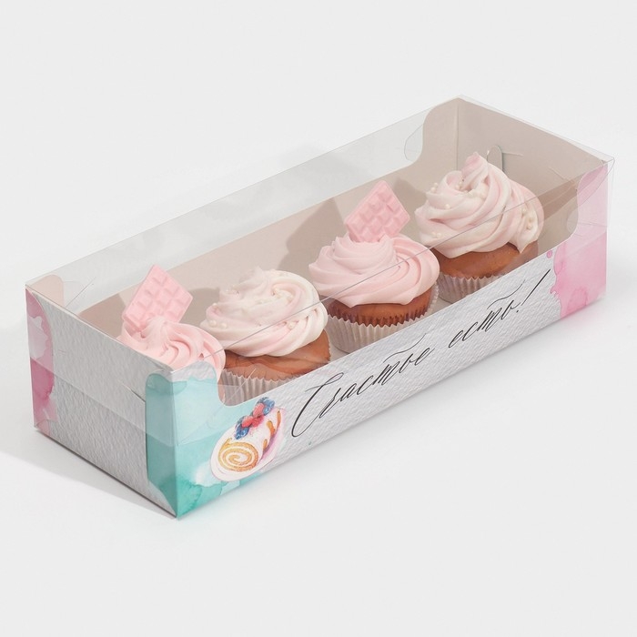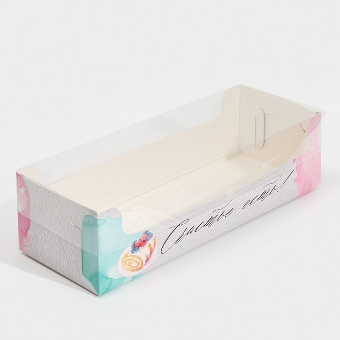 Кондитерская упаковка, коробка для кекса с PVC крышкой, «Счастье есть!», 30 х 8 х 11 см