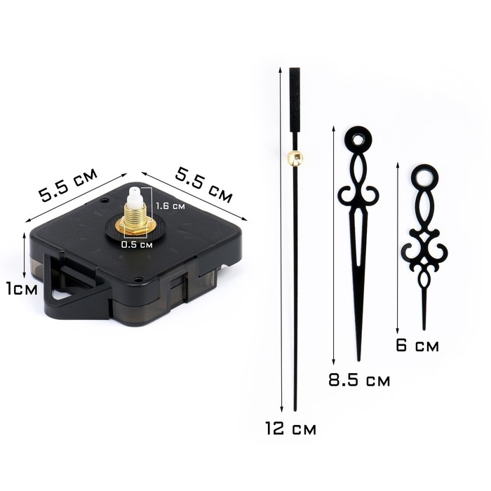 Часовой механизм со стрелками "Соломон-2", плавный ход, шток 16 мм, стрелки 60/85/120 мм