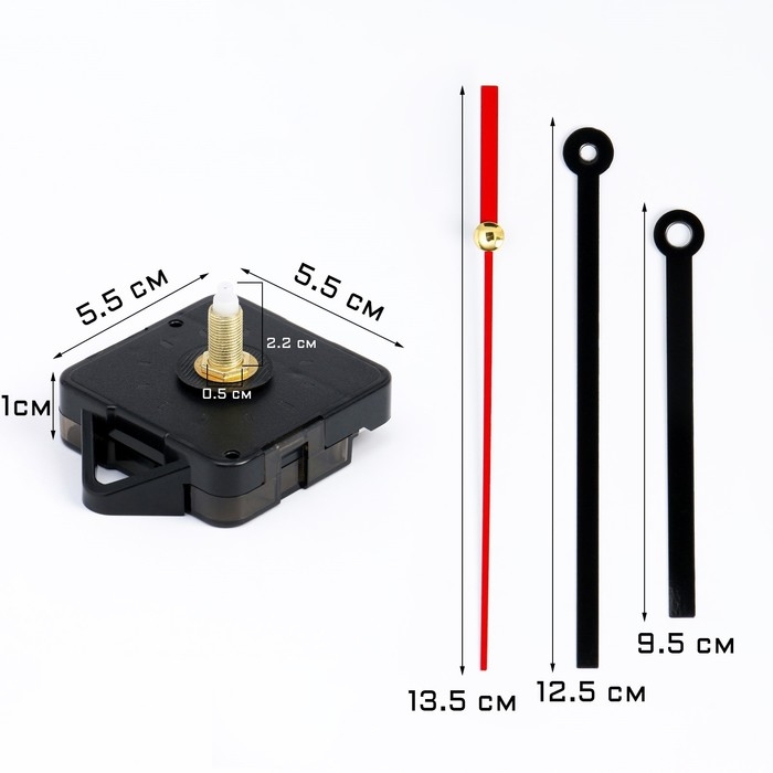 Часовой механизм со стрелками "Соломон-15", плавный ход, шток 22 мм, стрелки 95/125/135 мм