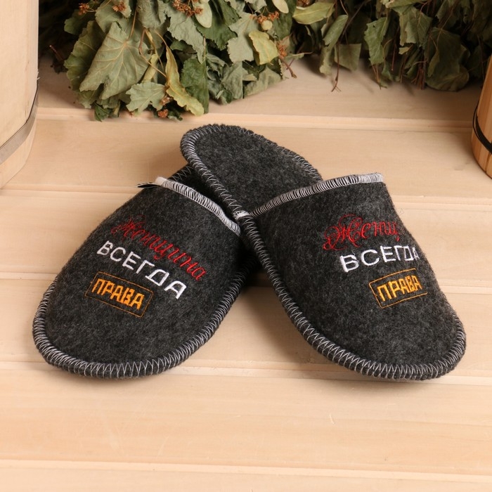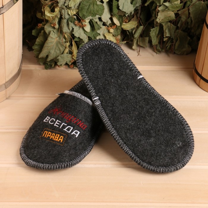 Тапочки для бани Добропаровъ «Женщина всегда права» женские, серые 26 см стелька