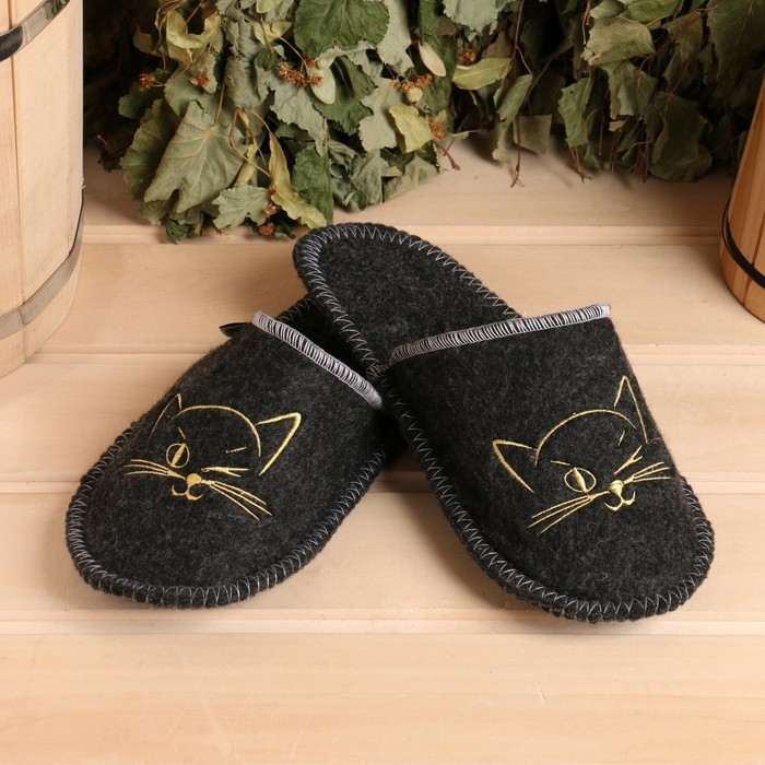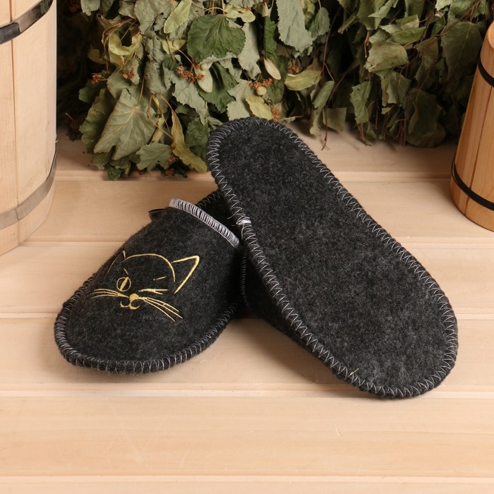 Тапочки для бани Добропаровъ «Кошечка» женские, шерсть, полиэфир, серые 26 см стелька