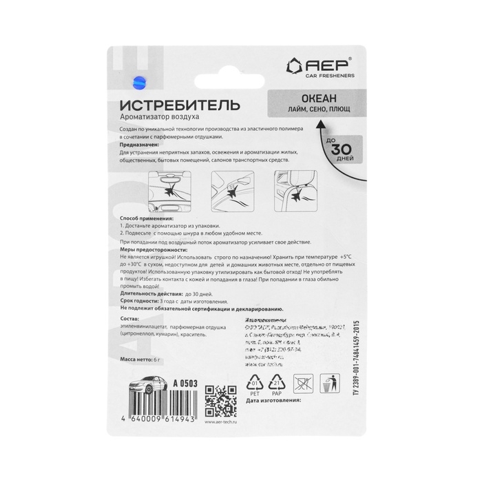 Предназначен для ароматизации воздуха в салоне автомобиля и помещении. Продукт создан по уникальной технологии производства. Бодрящий ароматический состав распространяет стойкие ароматы свежести, одновременно нейтрализуя посторонние запахи. Ароматизатор также подойдет в качестве подарка.