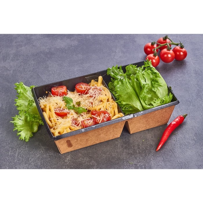 Упаковка - контейнер одноразовый, салатник с прозрачной крышкой. Изготовлен из картона с прозрачной крышкой. Подойдет для пикника и для домашних заготовок. Так же используется в кафе и ресторанах.