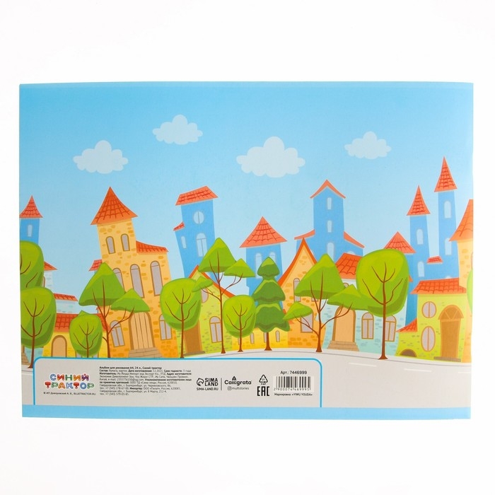 Альбом для рисования А4, 24 листа 100 г/м², на скрепке, Синий трактор