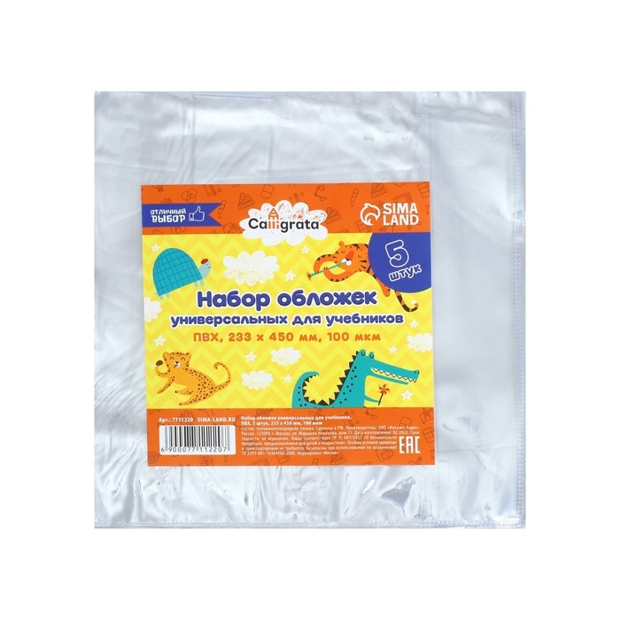 Набор обложек ПВХ 5 штук, 233 х 450 мм, 100 мкм, для учебников, универсальные