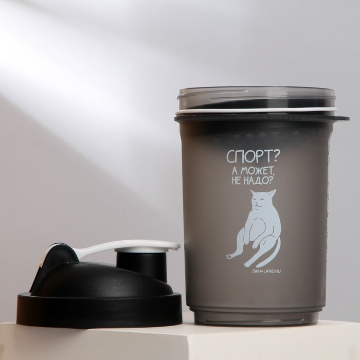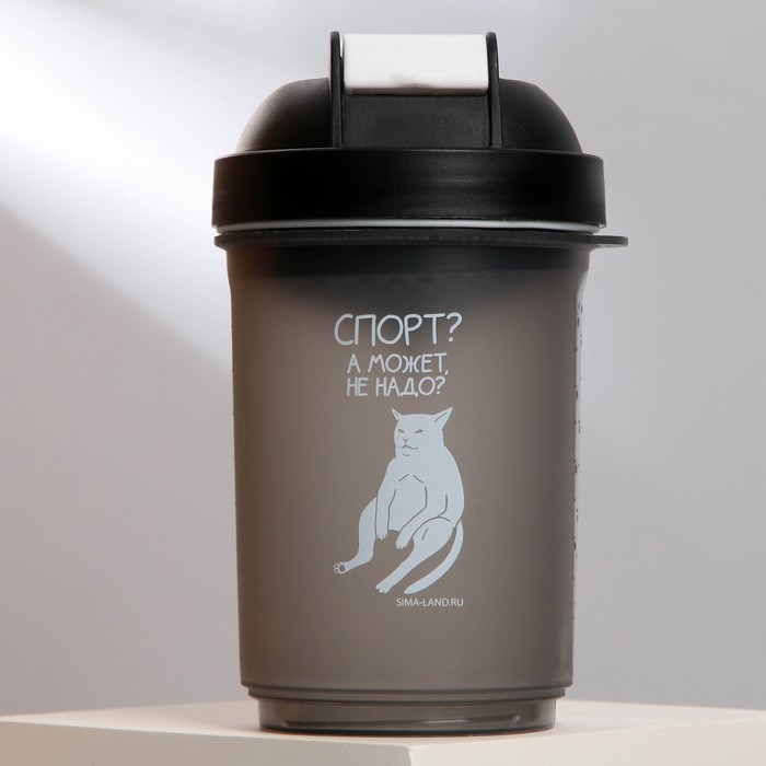 Шейкер спортивный «Спорт? А может не надо?», чёрный, с чашей под протеин, 500 мл