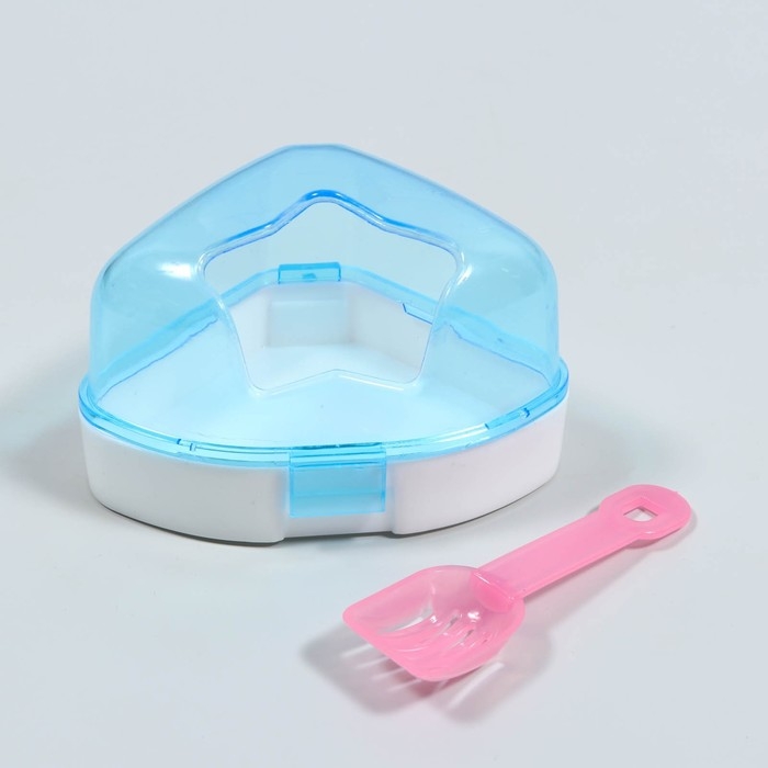 Ванночка для грызунов угловая с лопаткой, 14 х 10,4 см, голубая