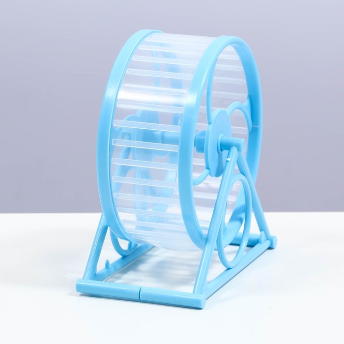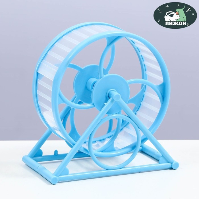 Голубое колесо на подставке станет полезным и приятным дополнением к аксессуарам для вашего грызуна, обеспечивая ему возможность вести активный образ жизни прямо в домашних условиях.