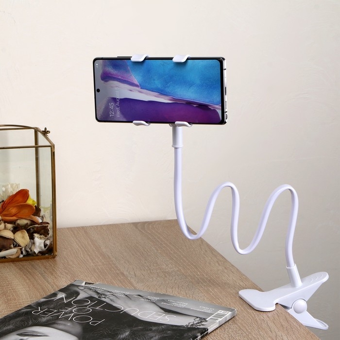 Держатель-прищепка Luazon, гибкий, регулируемый, для смартфона 3-7", 58 см, шир. держ. 12 см, белый