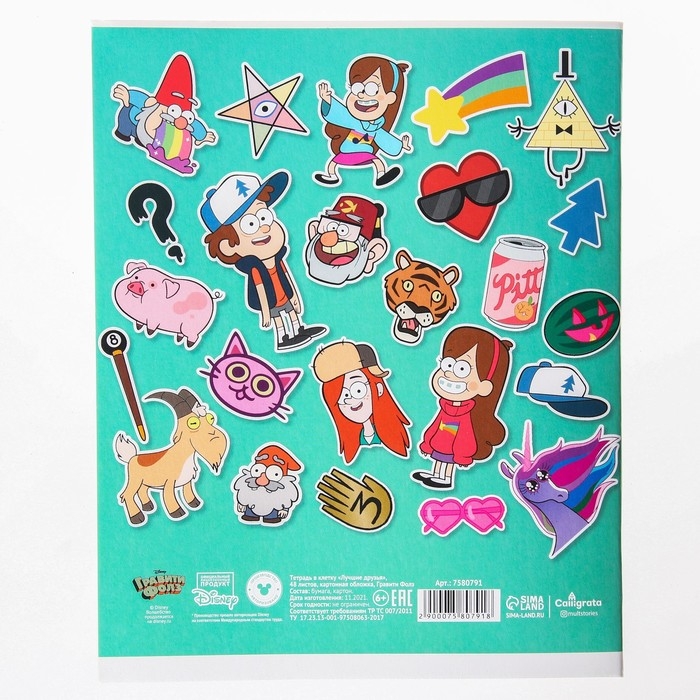Тетрадь 48 листов в клетку, картонная обложка "Лучшие друзья", Гравити Фолз