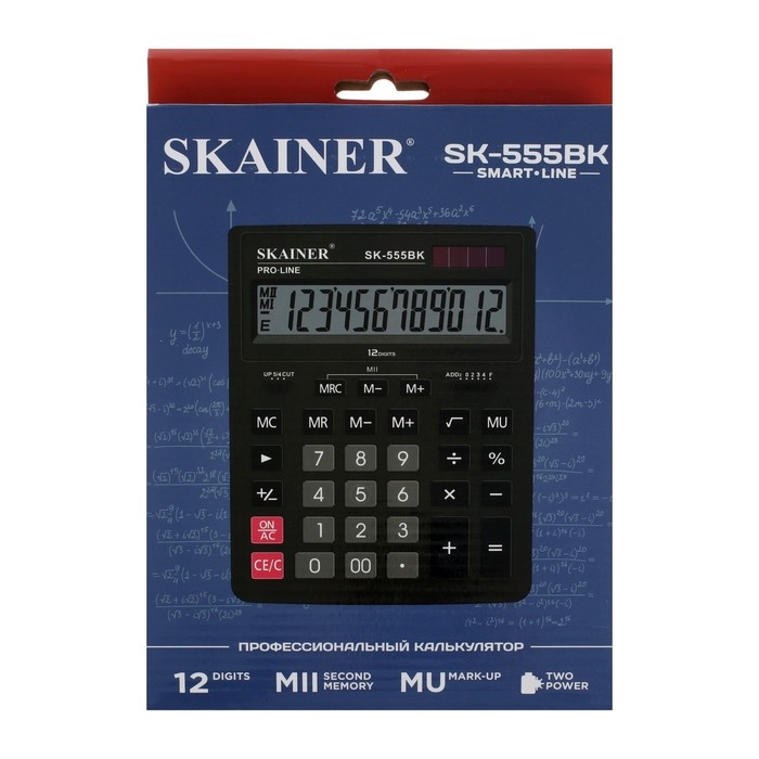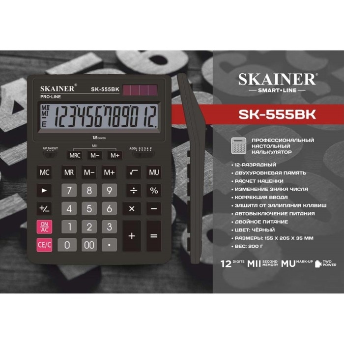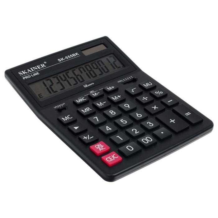 Калькулятор настольный большой, 12-разрядный, SKAINER SK-555BK, 2 питание, 2 память, 155 x 205 x 35 мм, черный
