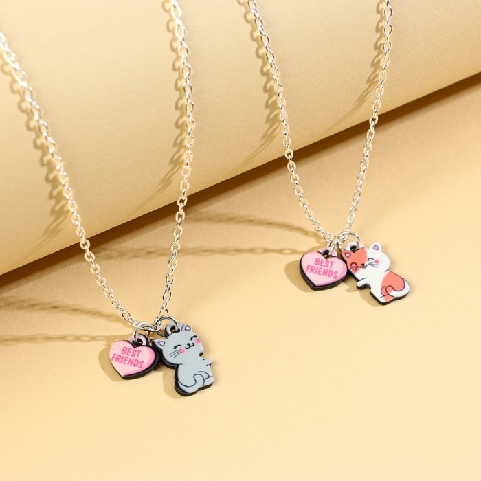 Неразлучники с цепочкой на шею и подвеской в виде котов лучшее выражение чувств для подруг, лучших друзей, влюбленных пар ,символ крепкой дружбы .