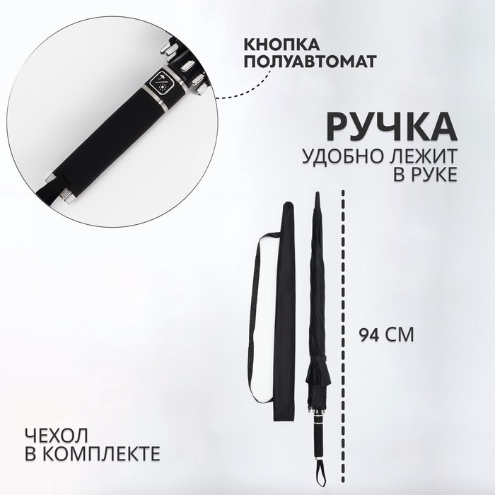 Элегантный зонт – трость сохранит вашу причёску и одежду сухими. Благодаря широкому и прочному куполу он обеспечит наилучшую защиту от непогоды.