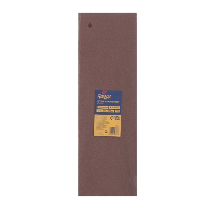 Шкурка шлифовальная в листах ТУНДРА, на бумажной основе водост., 115 х 280, Р60, 10 шт.