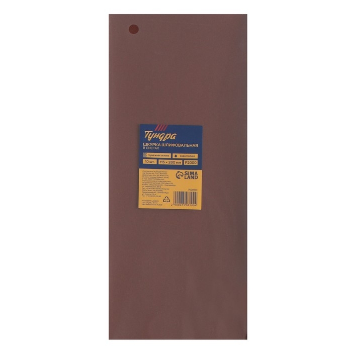 Шкурка шлифовальная в листах ТУНДРА, на бумажной основе водост., 115 х 280, Р2000, 10 шт.