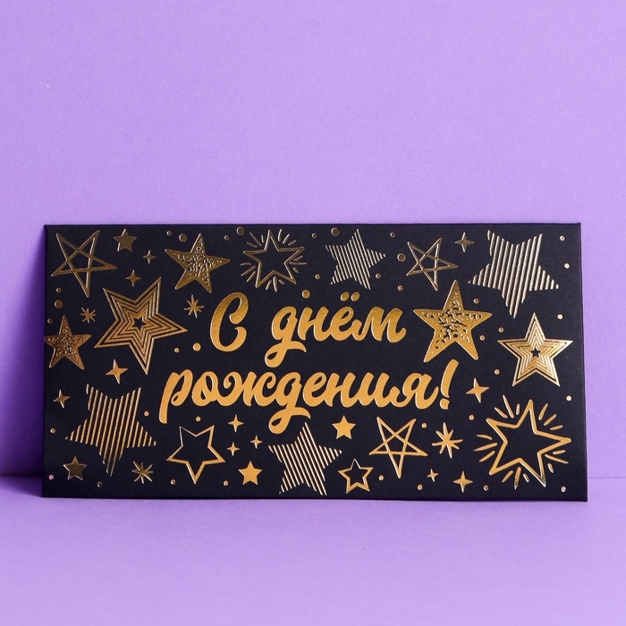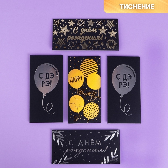 Набор конвертов для денег «С Днём Рождения», чёрный крафт, 5 шт