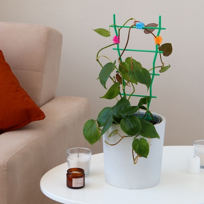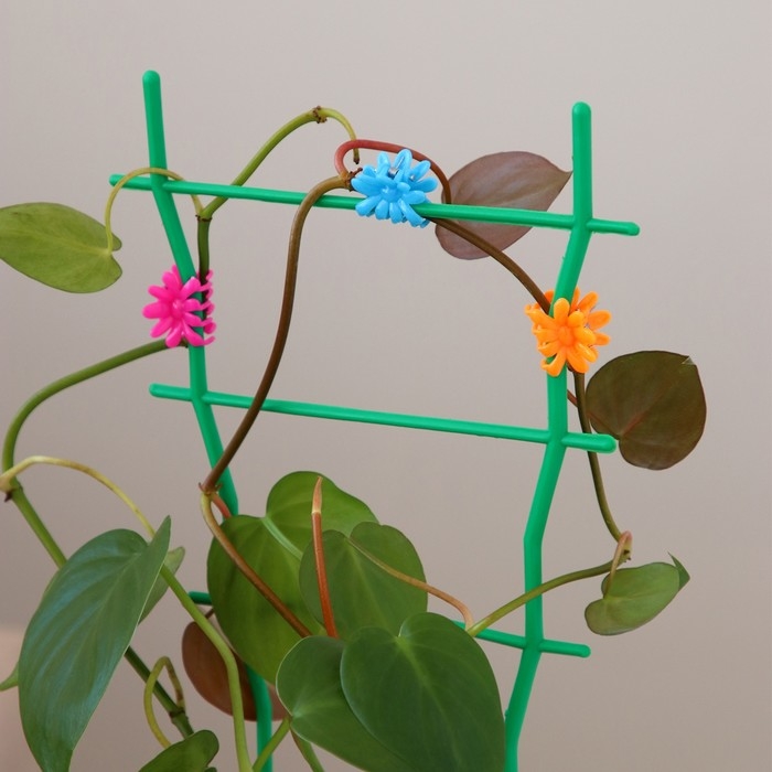 Закрепите клипсу вокруг стебля растения и прижмите её к опоре. Такое крепление легко снимается и устанавливается повторно, не причиняя вреда растению.
