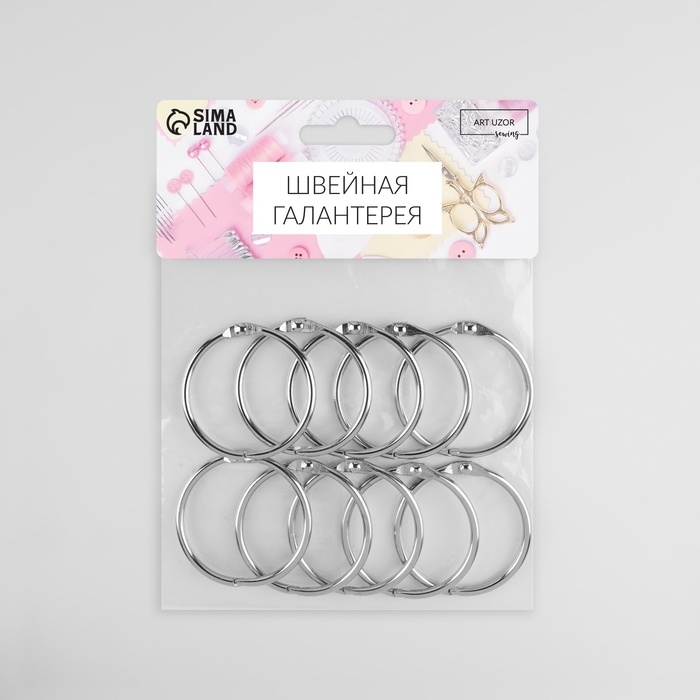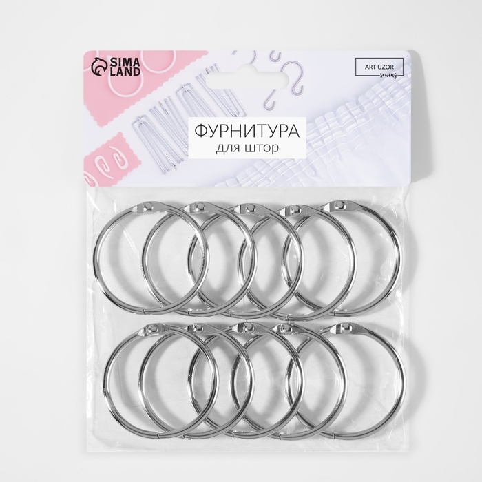 Кольцо для карниза, разъёмное, d = 38/44 мм, 10 шт, цвет серебряный