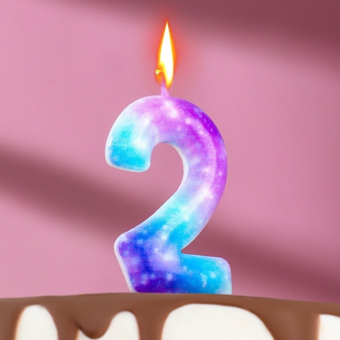 Свеча в торт на шпажке "Галактика", цифра 2, 5,5 см
