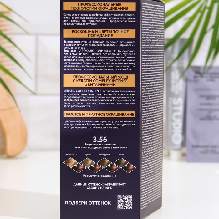 Профессиональная формула с биомаслами авокадо, оливы и льна обеспечивает стойкое окрашивание. Цвет долго держится, а волосы не теряют свою упругость и натуральный блеск.