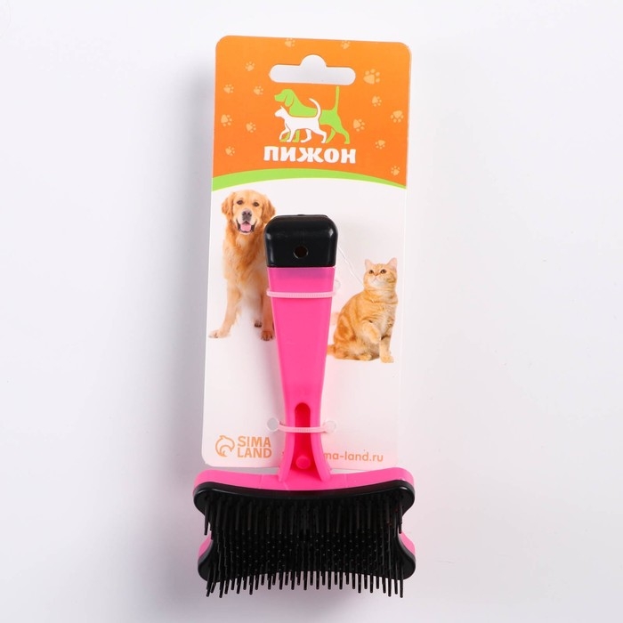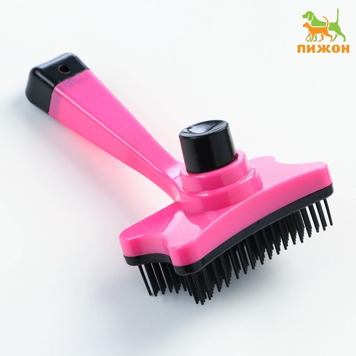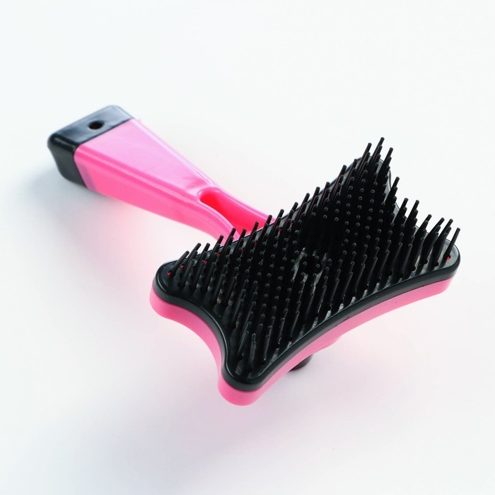 Пуходерка пластиковая "Косточка" с самоочисткой, 8,5 х 12,5 см, розовая