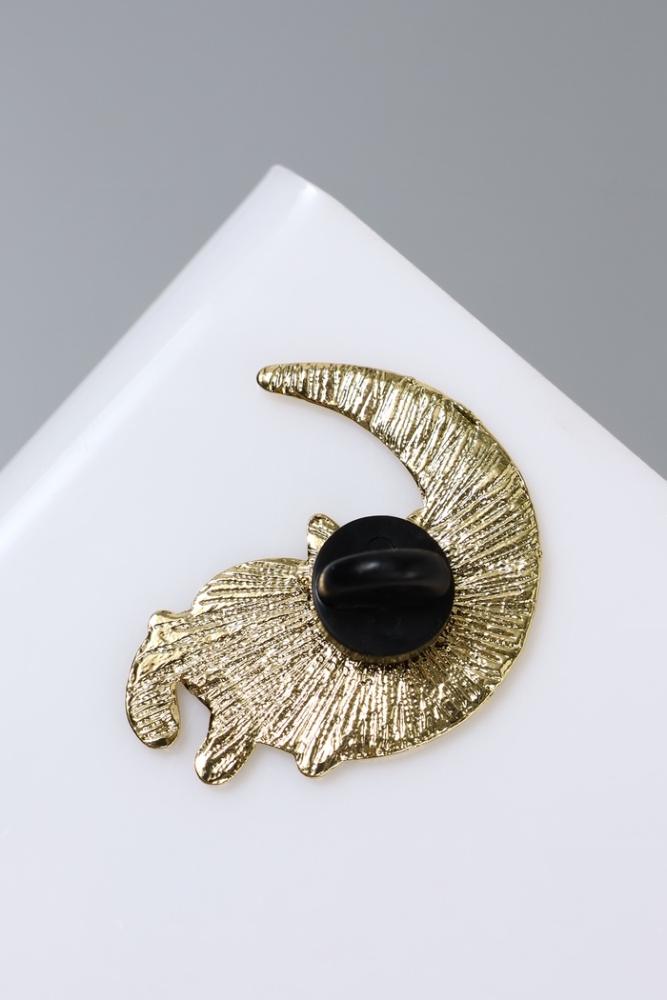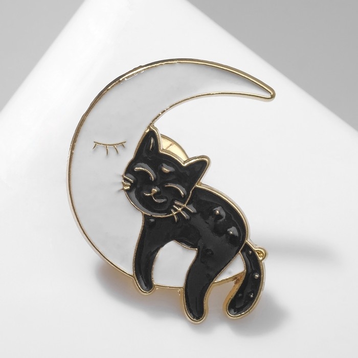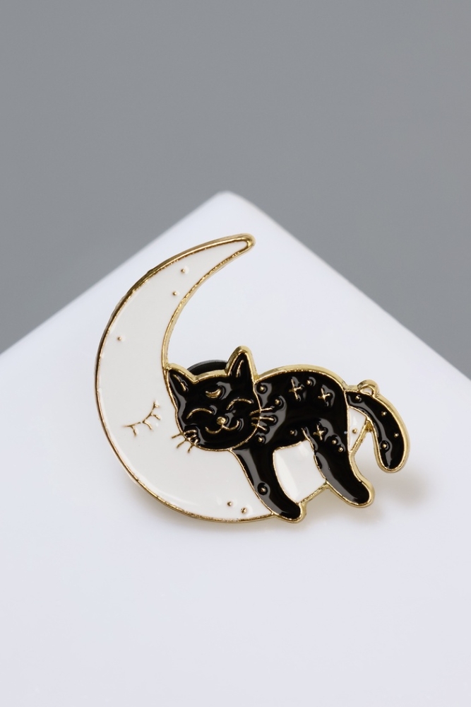 Значок «Кот» на Луне, цвет чёрно-белый в золоте
