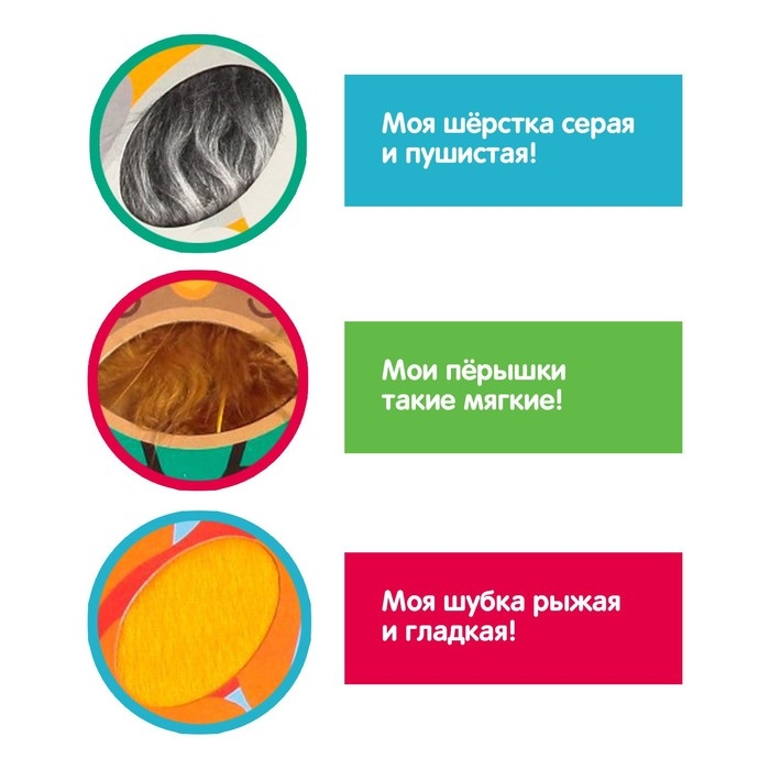 - Благодаря тактильным элементам кроха запомнит внешний вид зверей и их названия.