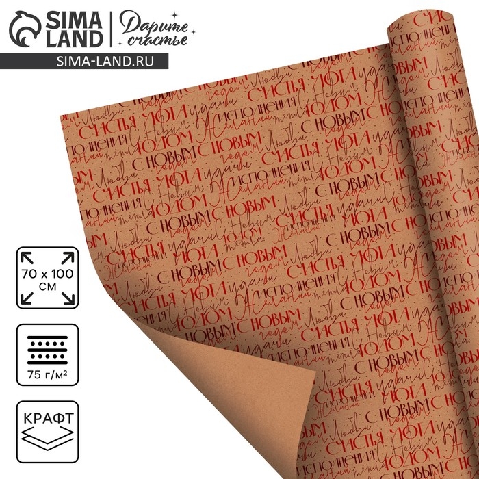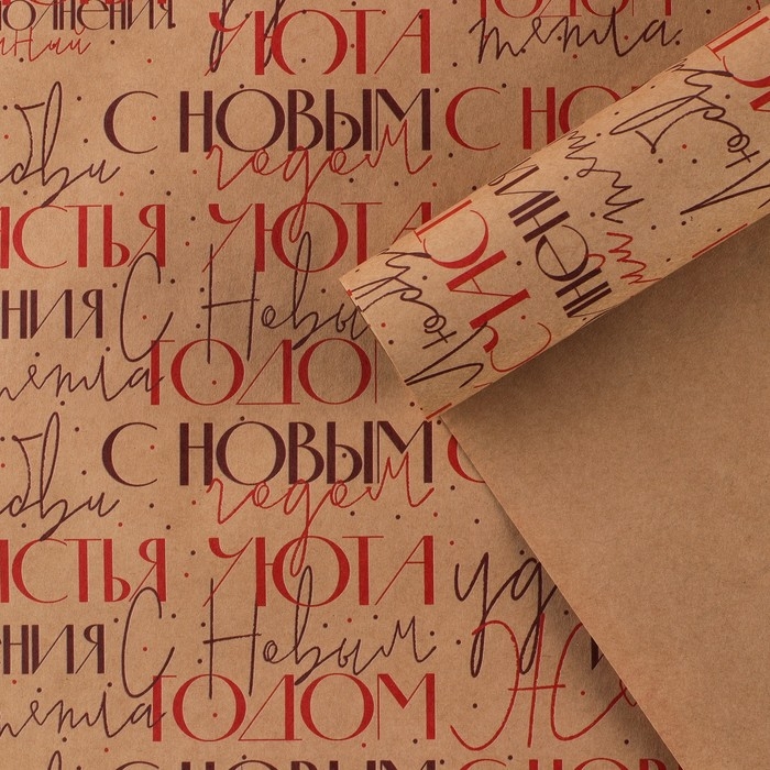 Упаковочная бумага на новый год крафтовая «С Новым Годом» , 70 х 100 см