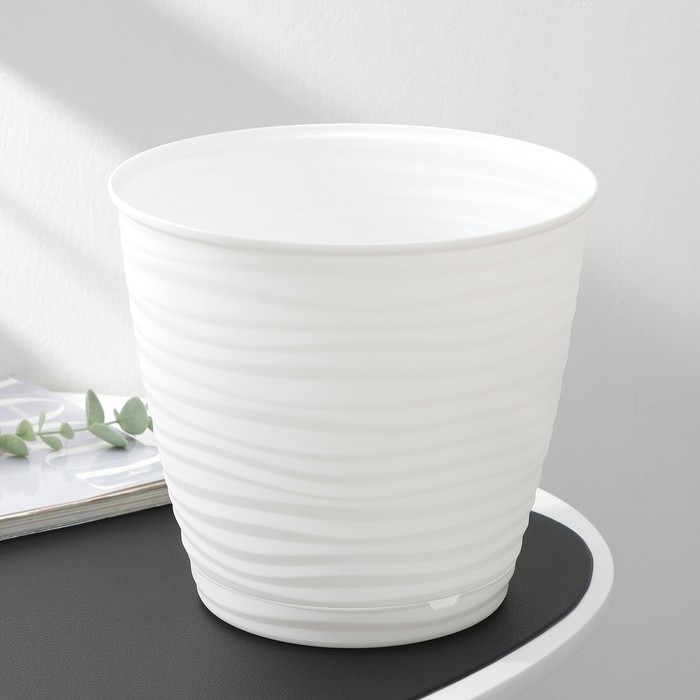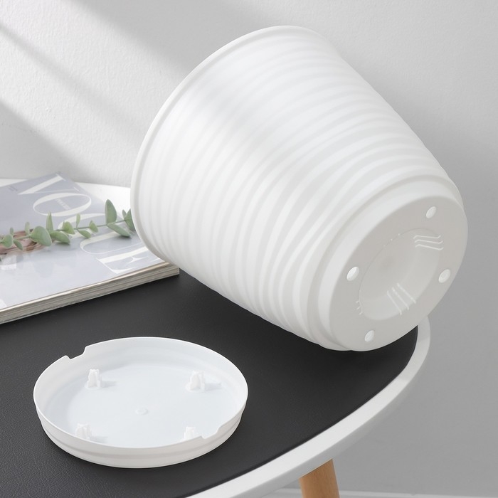 Горшок для цветов с поддоном Saffron, 5,4 л, d=22,4 см, h=20,5 см, пластиковый, белый