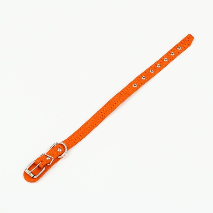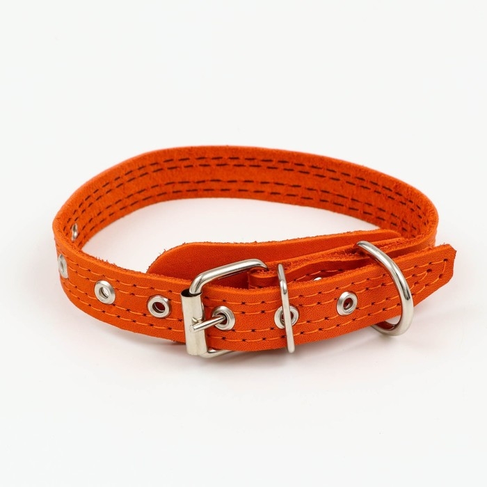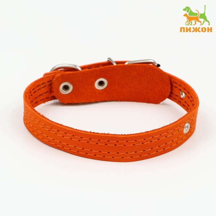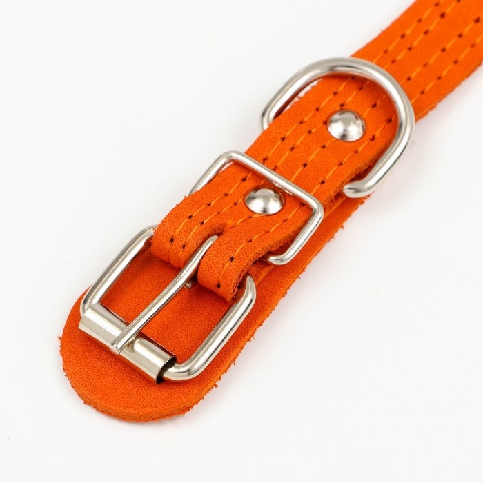 Ошейник кожаный с язычком прошитый, 2 х 40 см, ОШ 25-35 см , рыжий