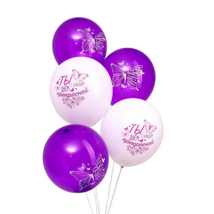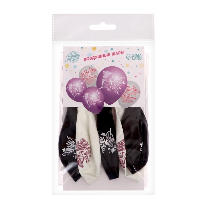 Воздушный шар латексный 12" «Бабочки», 5 шт.