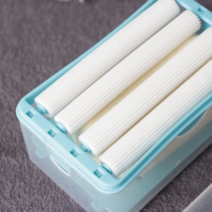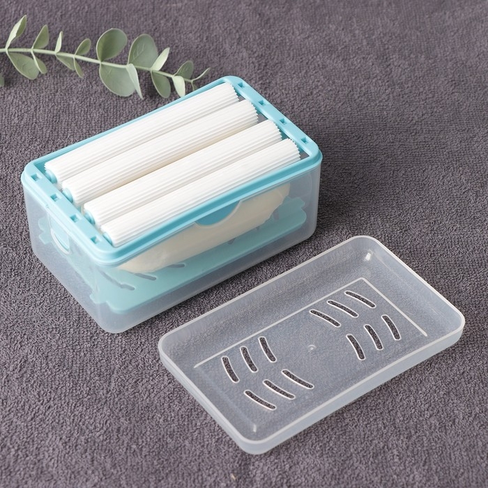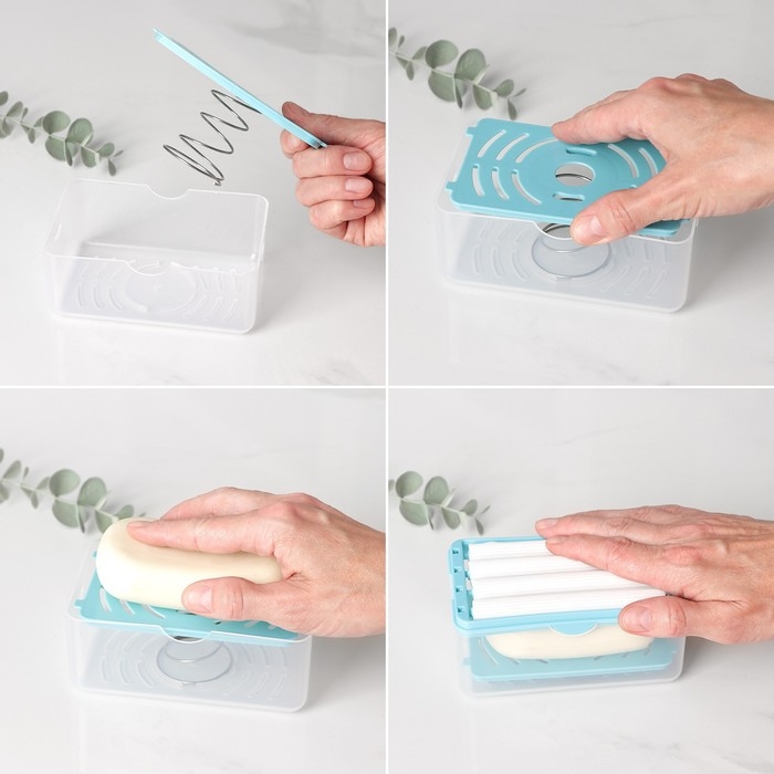 Чтобы собрать щётку, сначала вставьте в ёмкость подставку с пружинкой. На неё положите мыло, а затем закройте ёмкость крышкой с роликовыми вставками. Намочите валики водой. Щётка готова к использованию!
