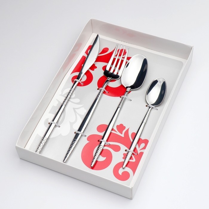 Набор столовых приборов из нержавеющей стали Доляна «Античность», 4 предмета, цвет серебряный