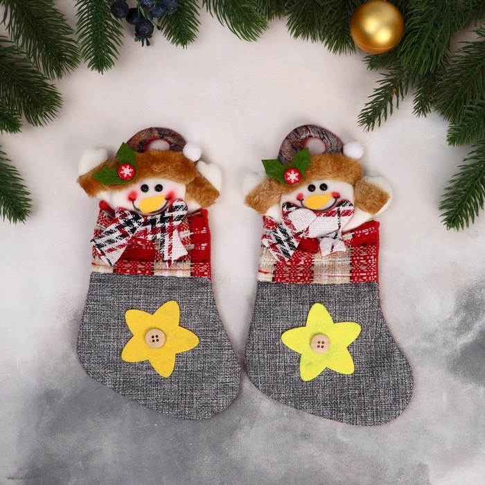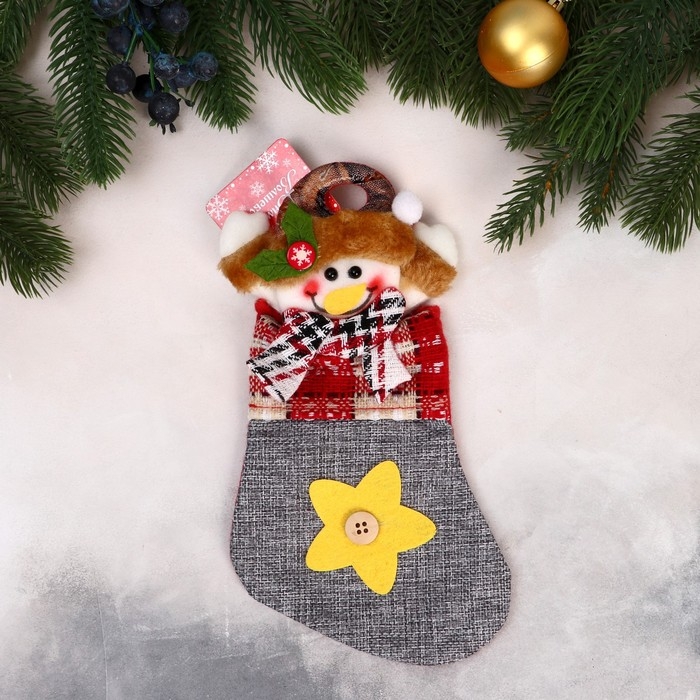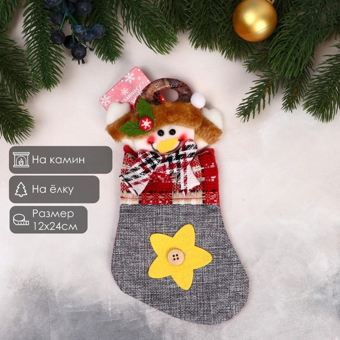 Носок для подарков "Снеговик и звёздочка с пуговкой" 12х24 см, серый