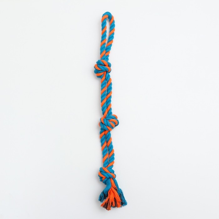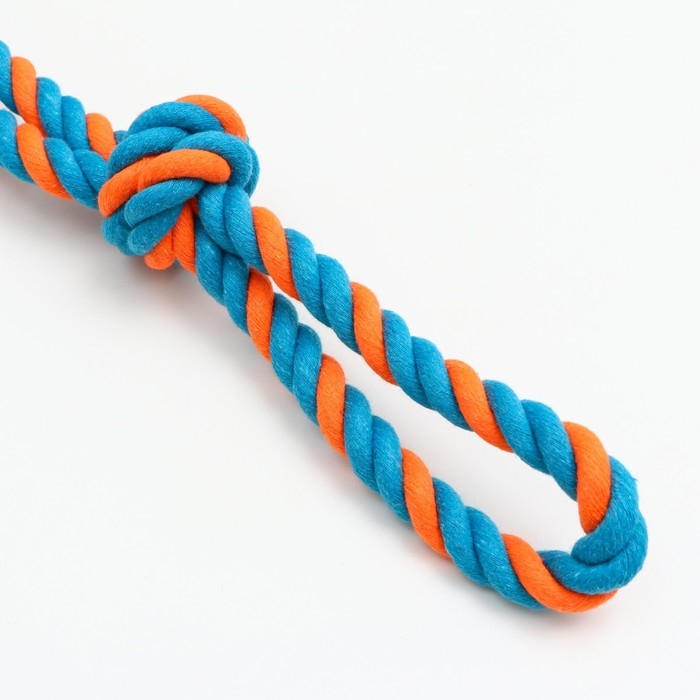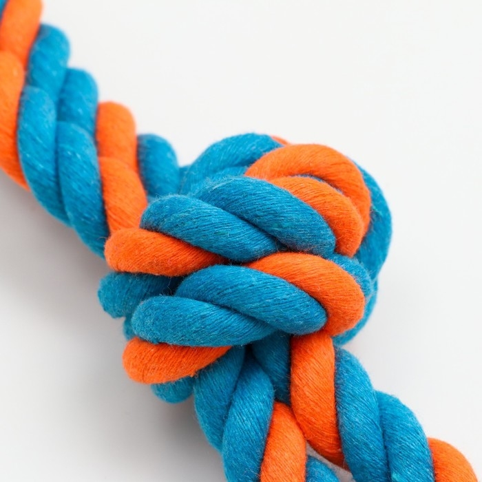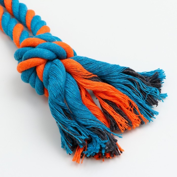 Игрушка-дразнилка канатная для собак, двойная, до 50 см, до 140 г, голубая/оранжевая