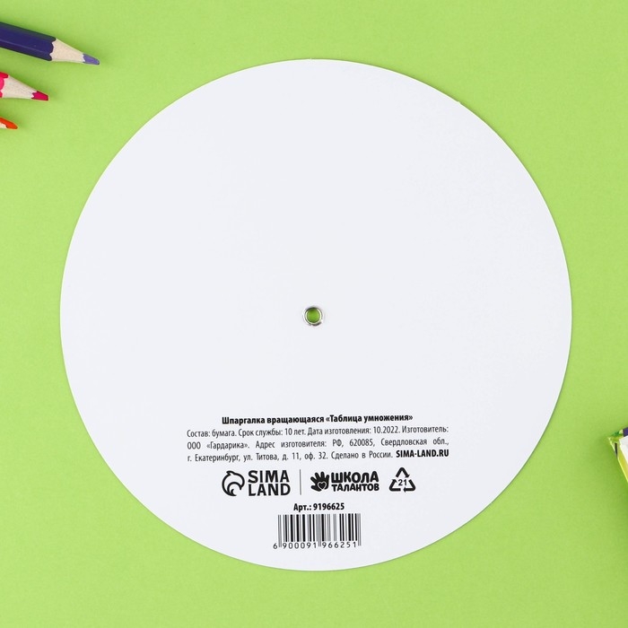 Вращающаяся картонная шпаргалка «Таблица умножения» поможет вашему ребёнку изучить и выучить таблицу умножения.